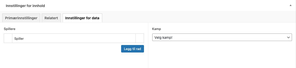 Under feltet Innstillinger for data vil du nå se en kampvelger: