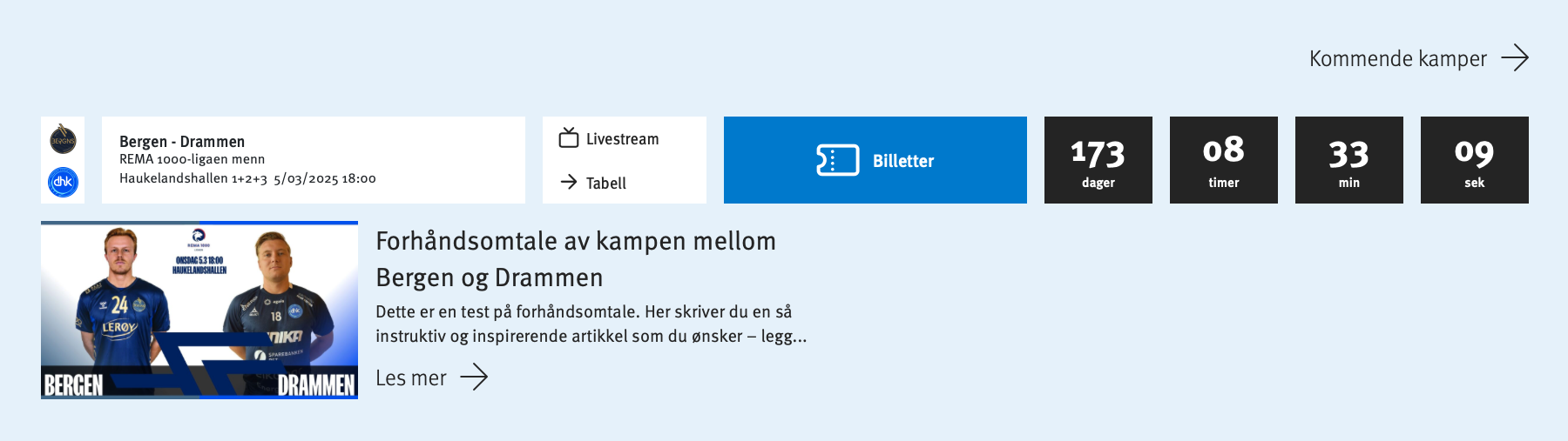 Du kan se et eksempel på dette her: Forhåndsomtale av kampen mellom Bergen og Drammen