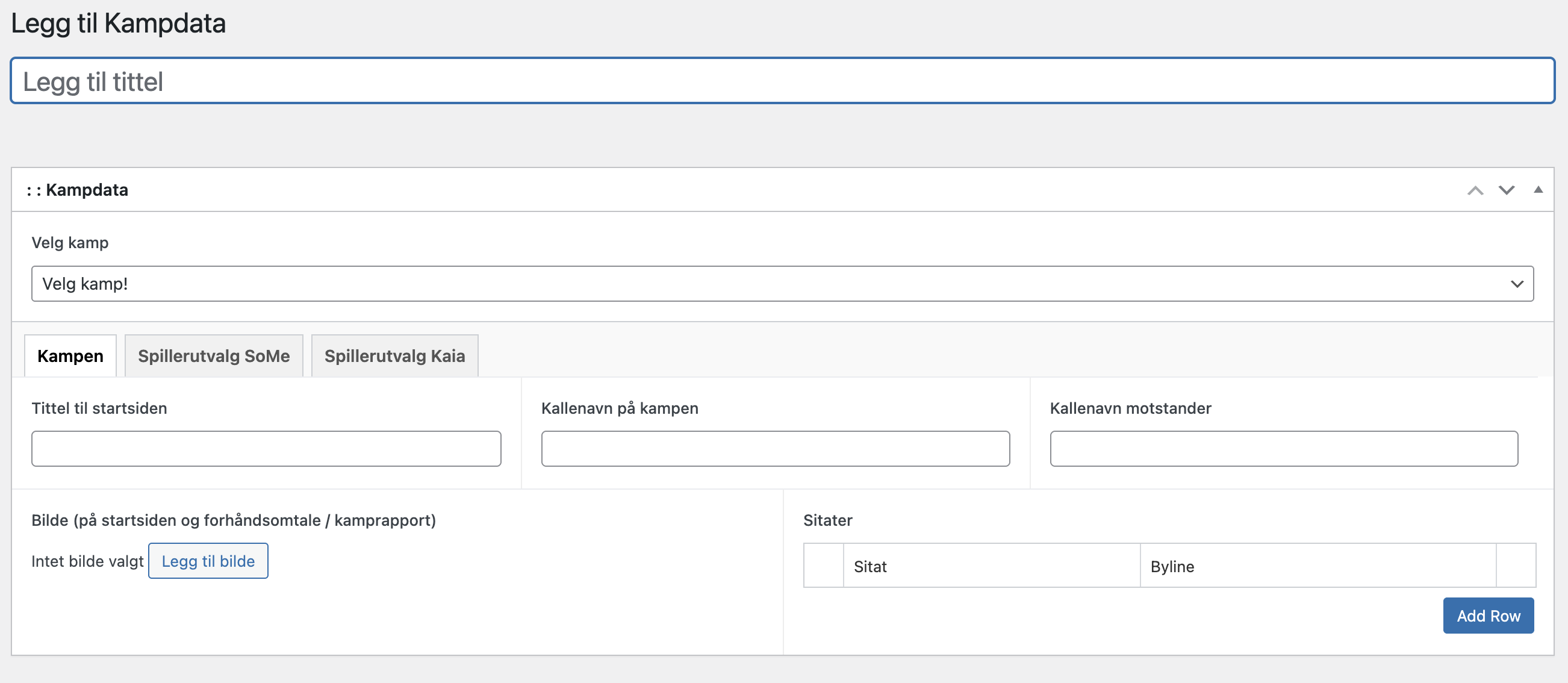 Du kan legge inn en tittel, som vises på forsiden. Du kan også legge inn kallenavn på kamp og motstander, som legges til grunn for artikkelen Kaia skriver.