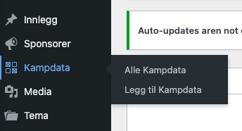 For å redigere spillere eller legge til tekst går du til adminpunktet «Kampdata» som du finner i venstre kolonne.