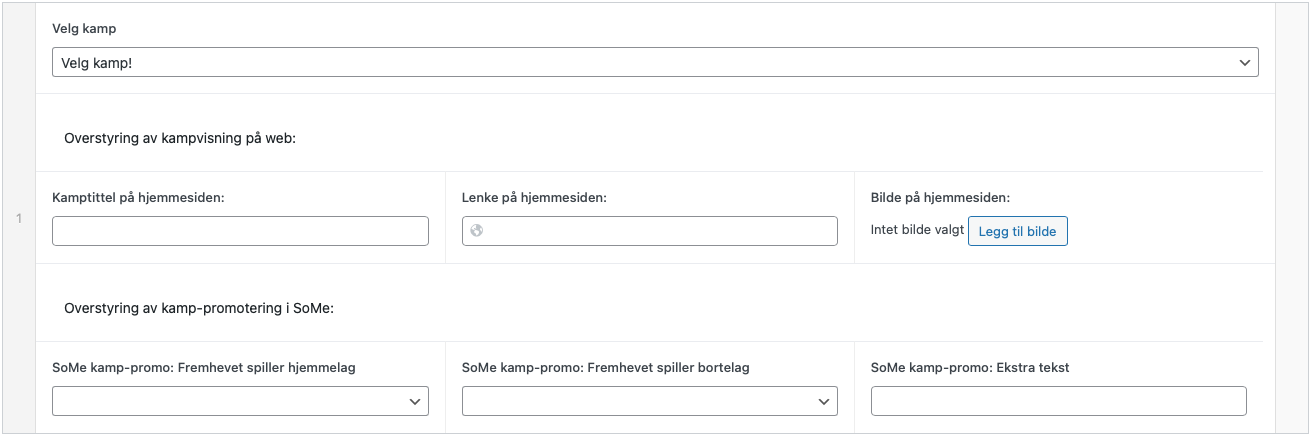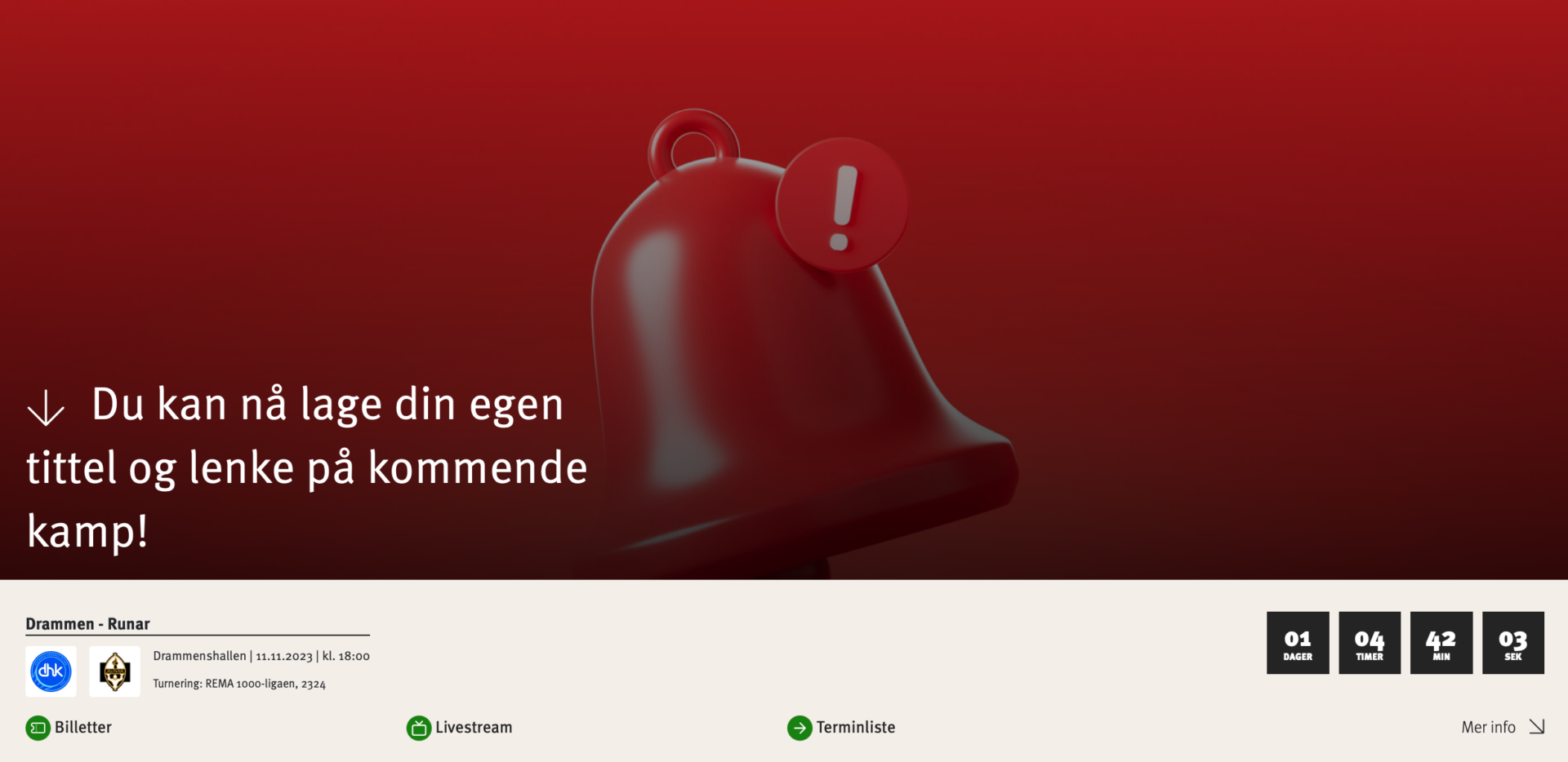 Du kan nå legge til egen tittel på kamp som dukker opp i hero-feltet på siden – så du i enda større grad kan promotere kommende kamper.